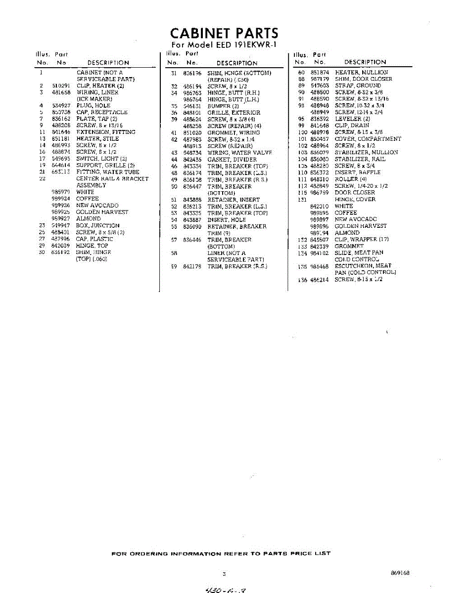 Parts for Whirlpool EED191EKWR1: 03 - Section Parts