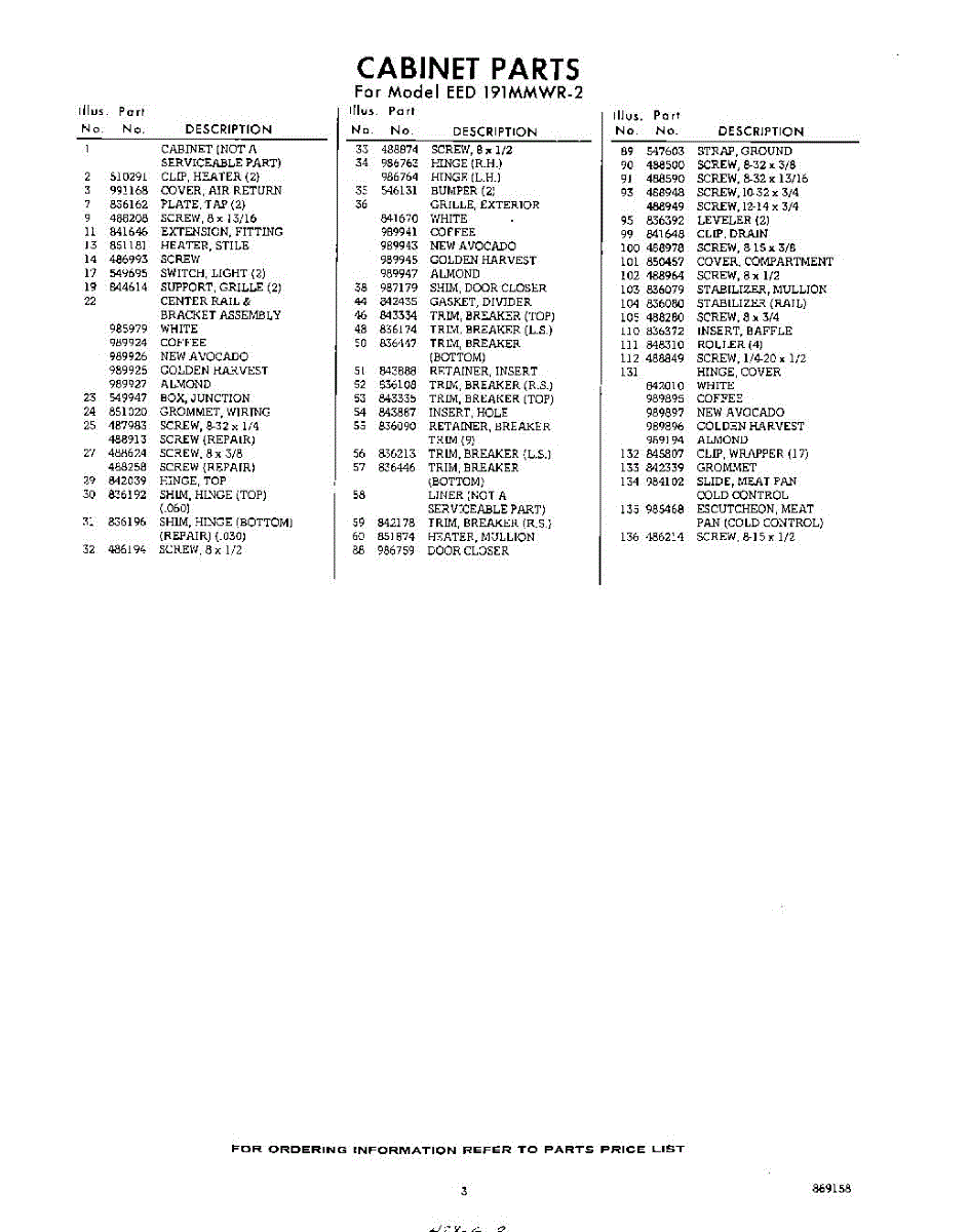 Parts for Whirlpool EED191MMWR2: 03 - Section Parts