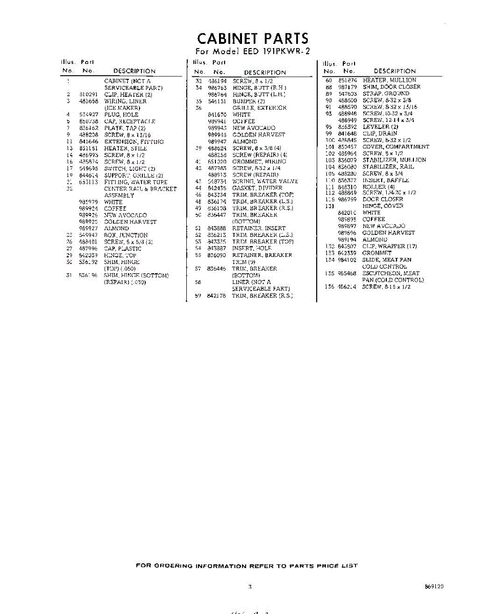 Parts for Whirlpool EED191PKWR2: 03 - Section Parts