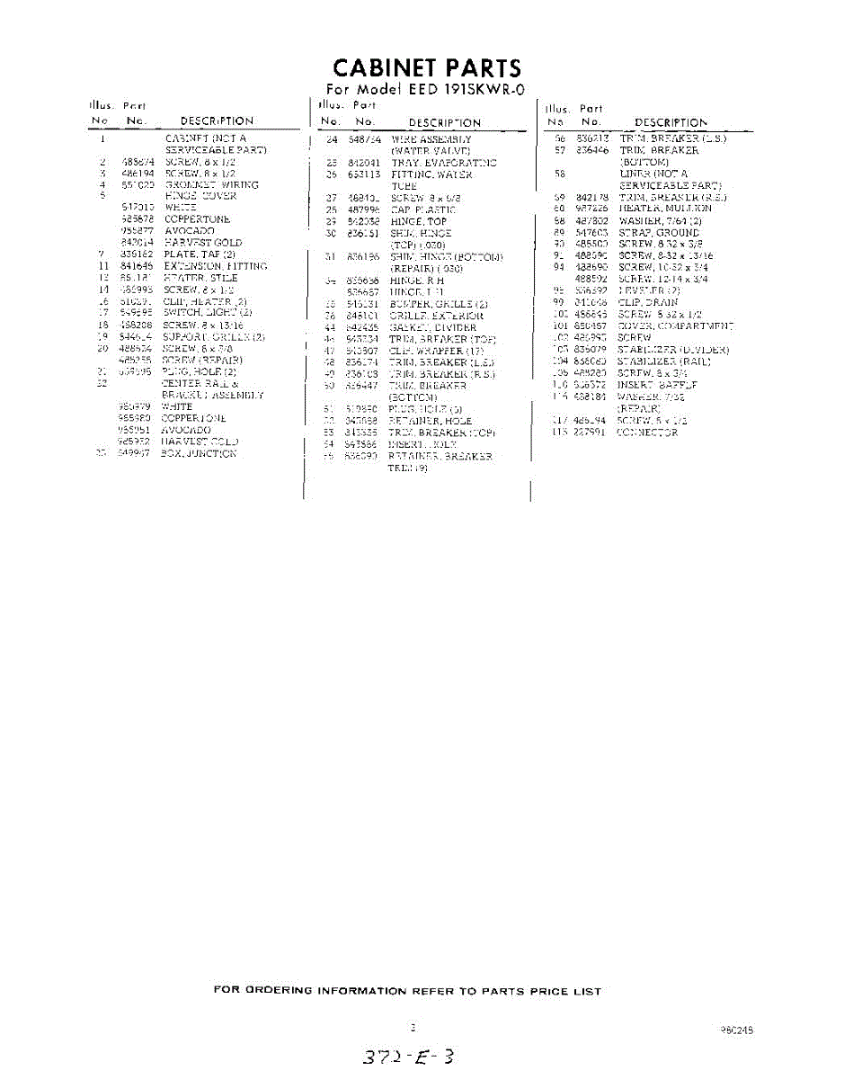 Parts for Whirlpool EED191SKWR0: 03 - Section Parts