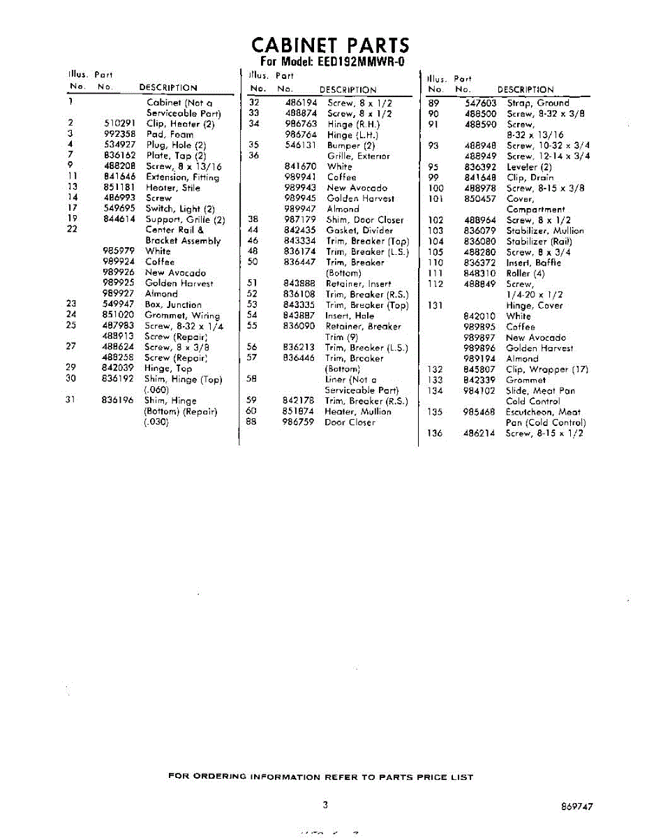 Parts for Whirlpool EED192MMWR0: 03 - Section Parts