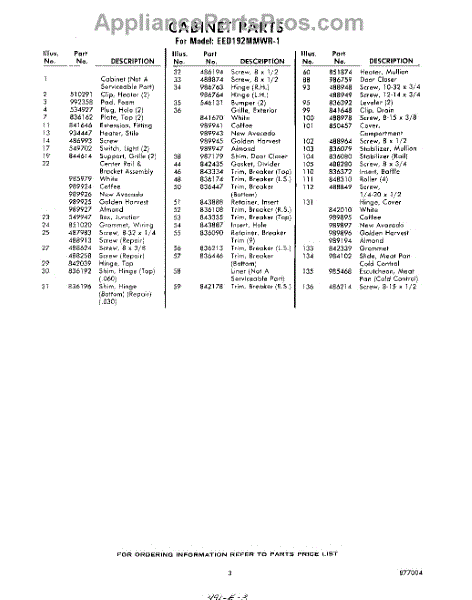 Parts for Whirlpool EED192MMWR1: 03 - Section Parts