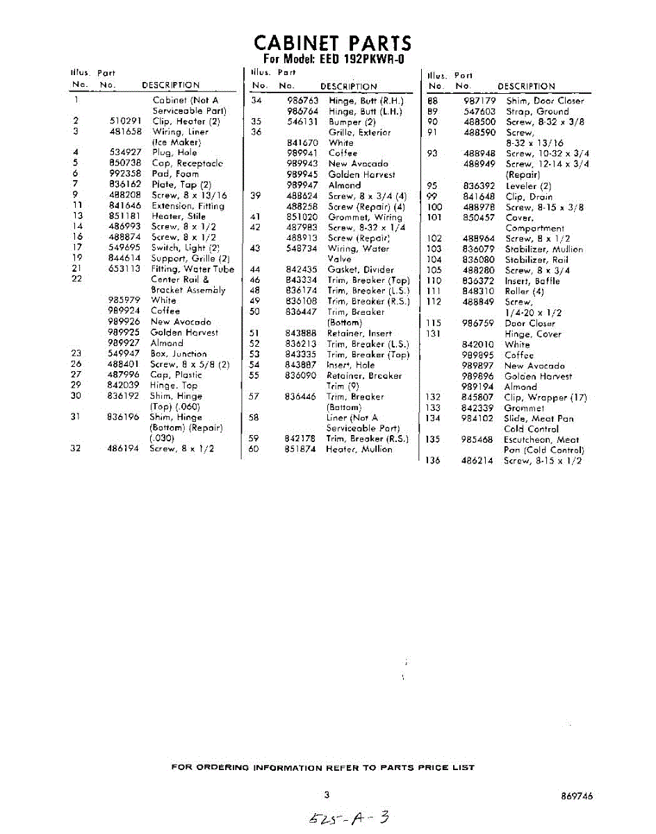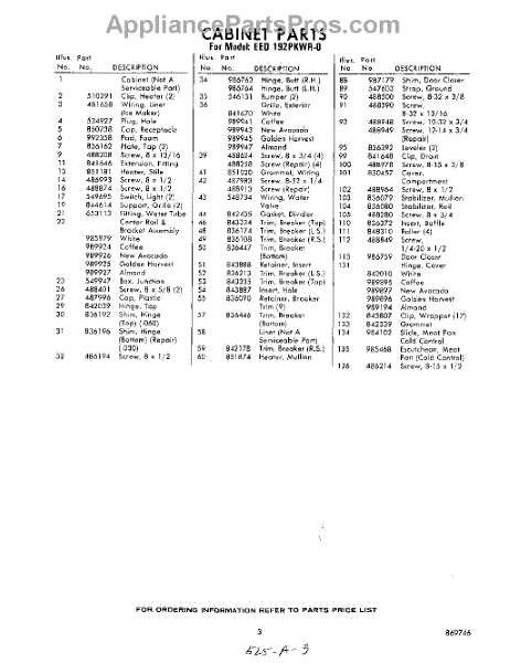 Parts for Whirlpool EED192PKWR0: 03 - Section Parts