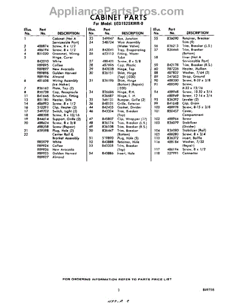 Parts for Whirlpool EED192SKWR0: 03 - Section Parts