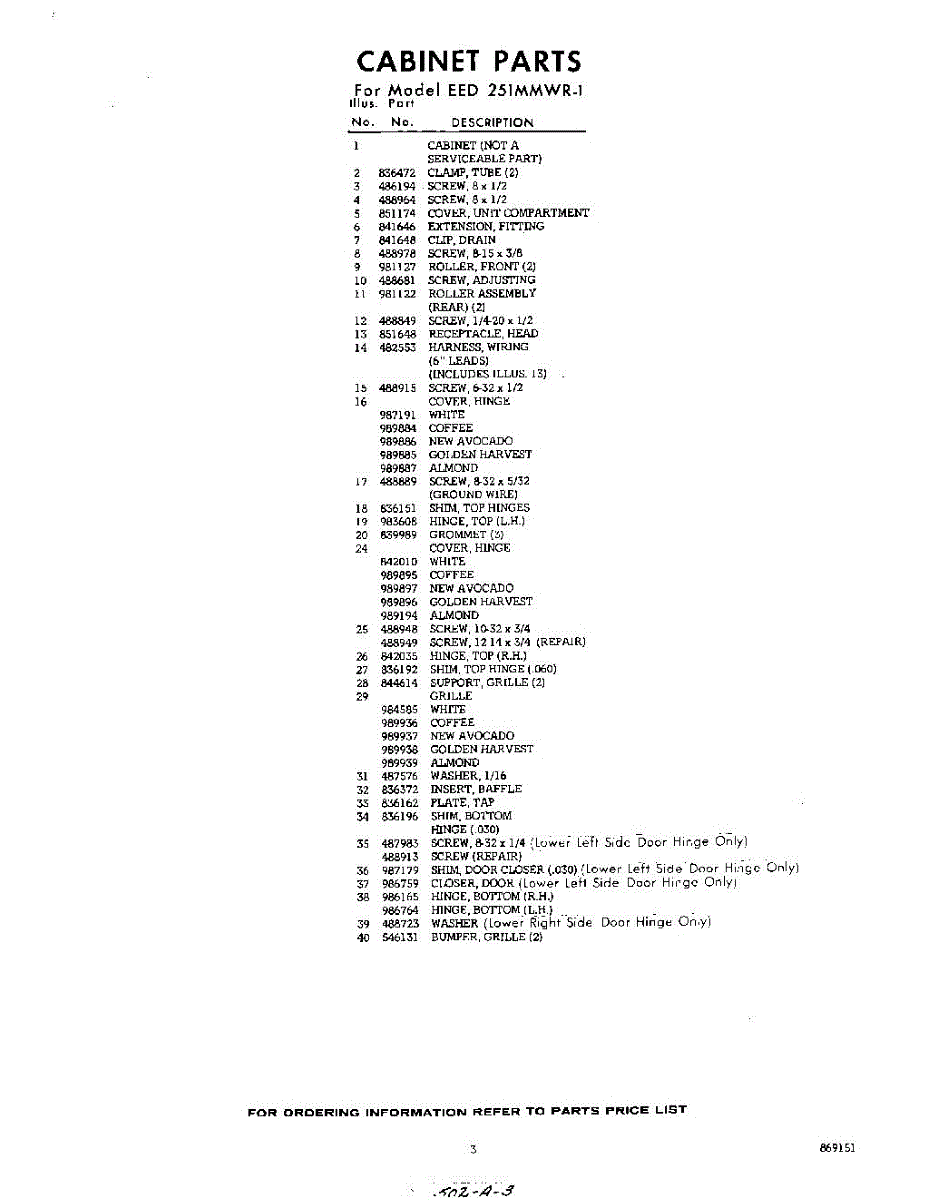 Parts for Whirlpool EED251MMWR1: 03 - Section Parts