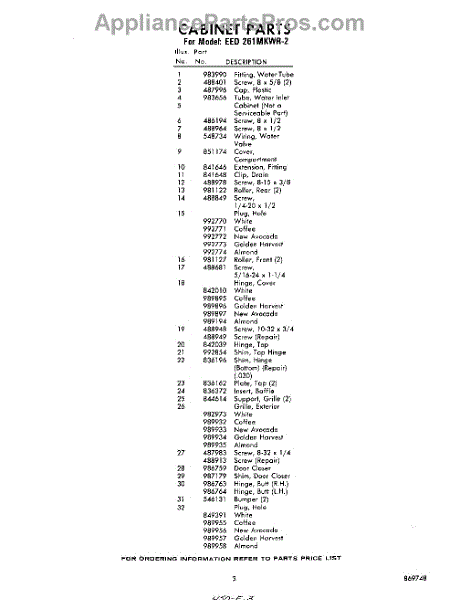 Parts for Whirlpool EED261MKWR2: 03 - Section Parts