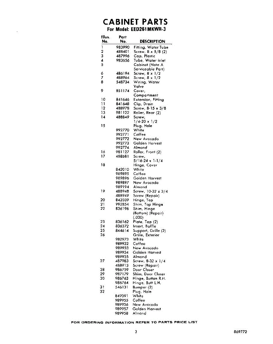 Parts for Whirlpool EED261MKWR3: 03 - Section Parts