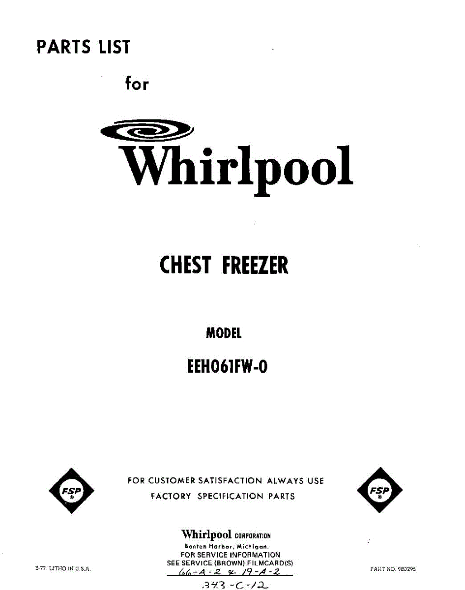 Parts for Whirlpool EEH061FW0: 01 - Section Parts