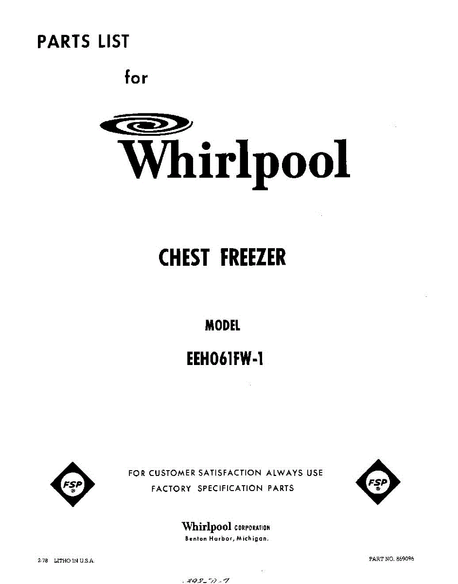 Parts for Whirlpool EEH061FW1: 01 - Section Parts