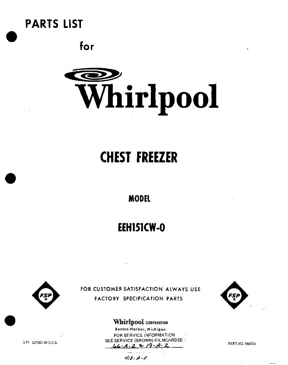 Parts for Whirlpool EEH151CW0: 01 - Section Parts