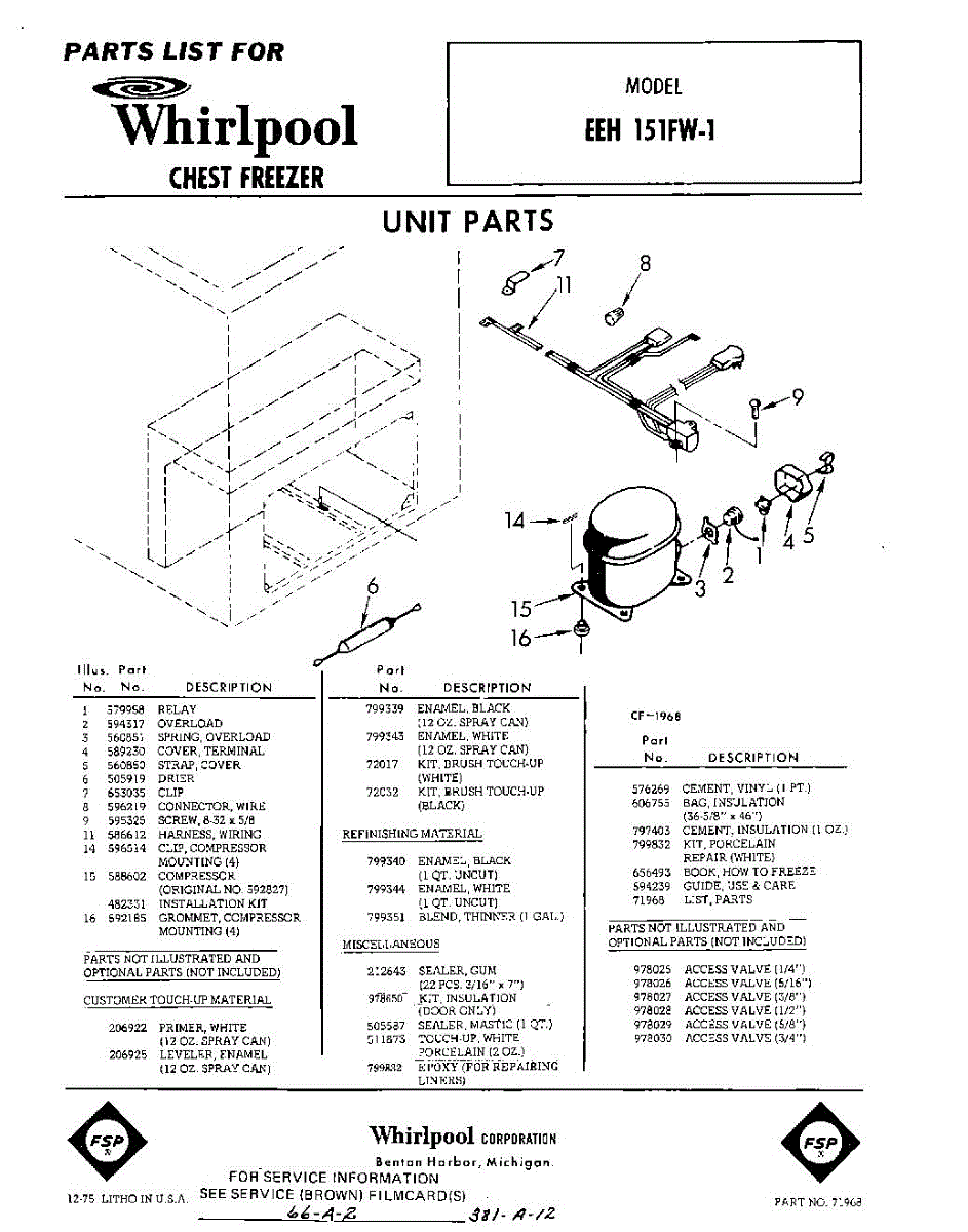 Parts for Whirlpool EEH151FW1: 01 - Section Parts