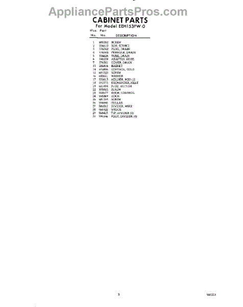 Parts for Whirlpool EEH153FW0: 03 - Section Parts