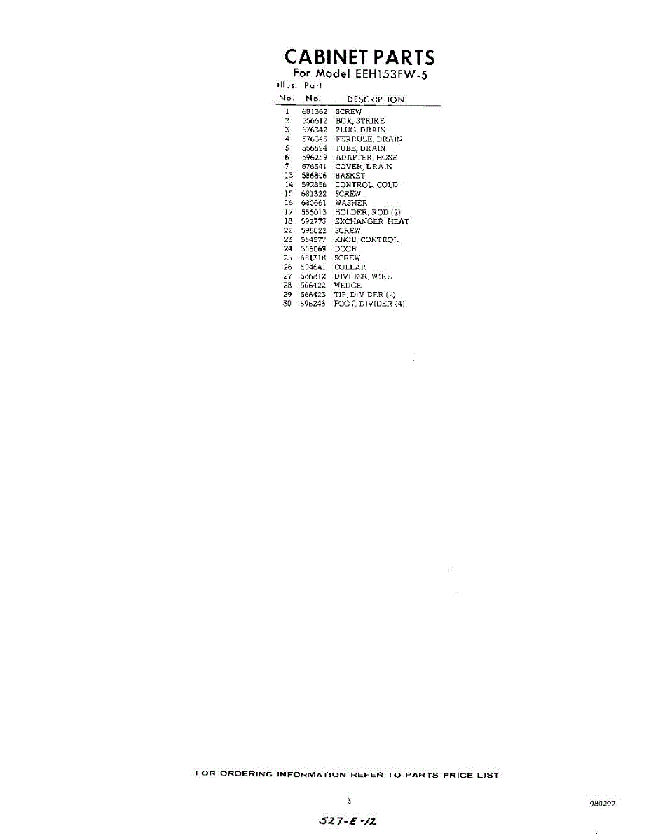 Parts for Whirlpool EEH153FW5: 03 - Section Parts