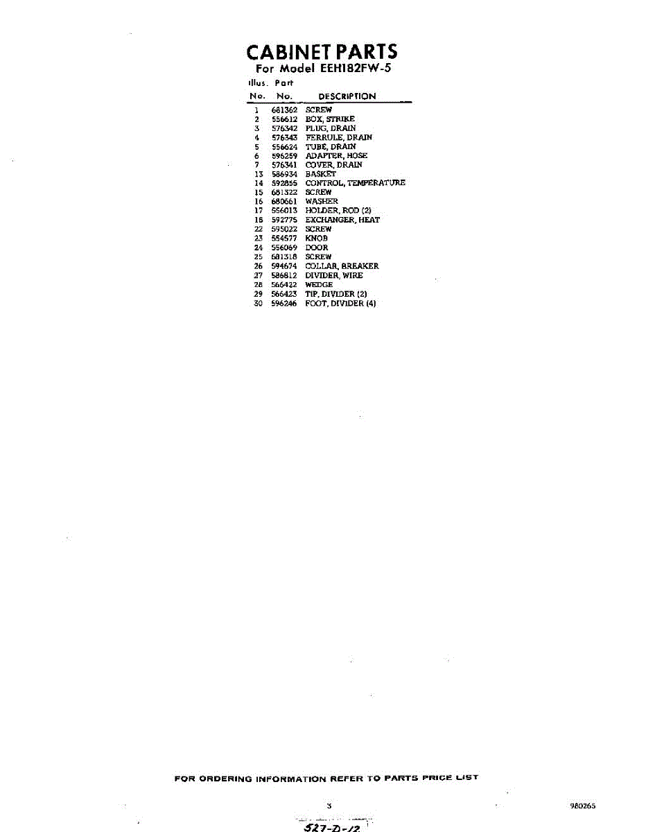 Parts for Whirlpool EEH182FW5: 03 - Section Parts