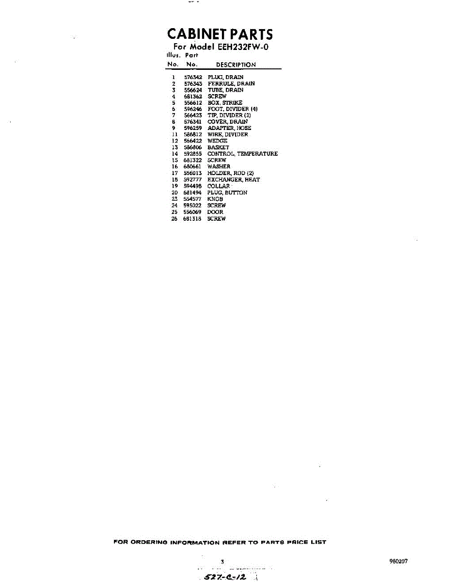 Parts for Whirlpool EEH232FW0: 03 - Section Parts