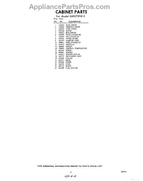 Parts for Whirlpool EEH272FW0: 03 - Section Parts