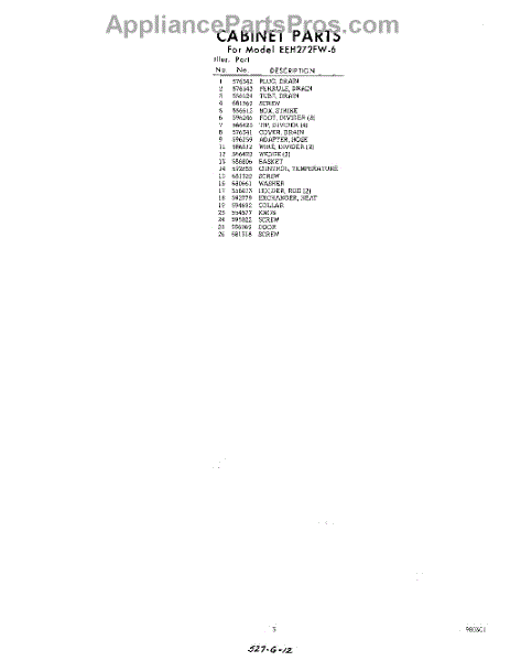 Parts for Whirlpool EEH272FW6: 03 - Section Parts