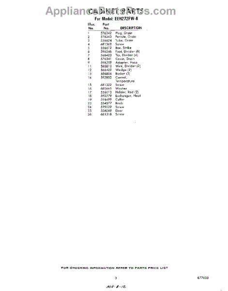 Parts for Whirlpool EEH272FW8: 03 - Section Parts