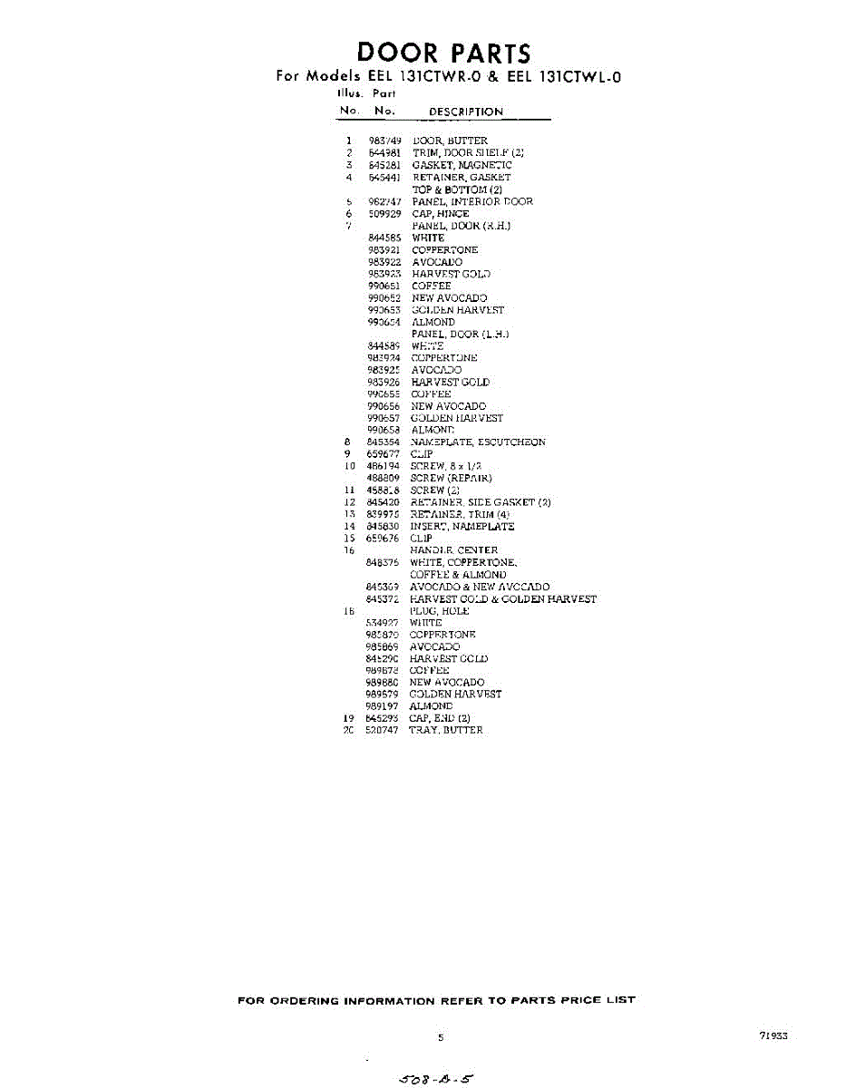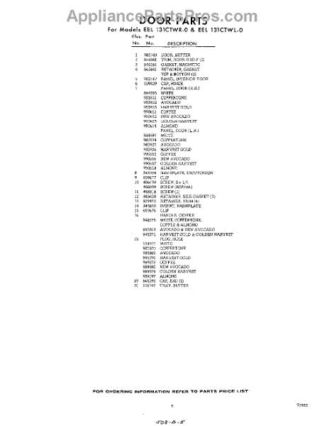 Parts for Whirlpool EEL131CTWR0: 05 - Section Parts