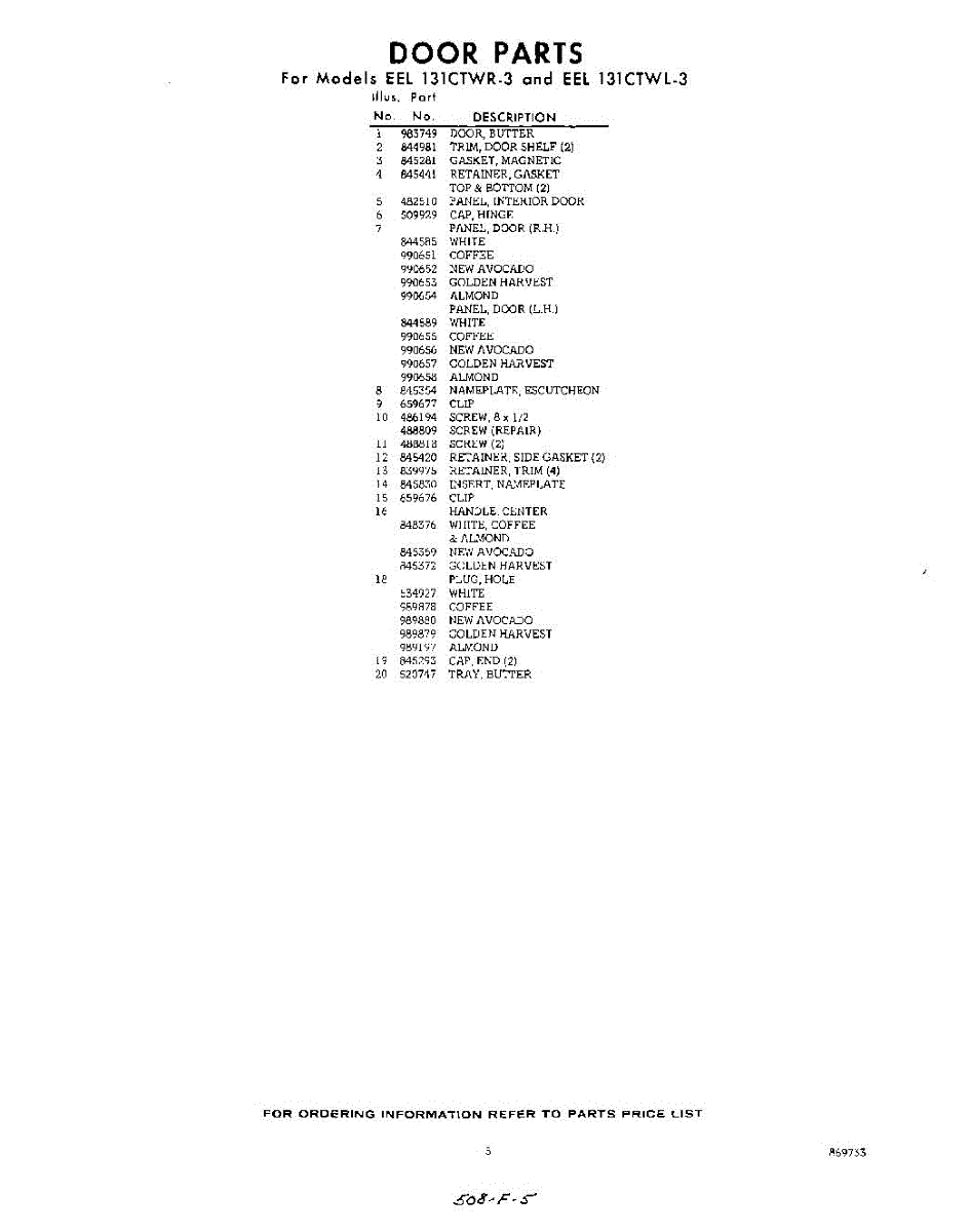 Parts for Whirlpool EEL131CTWR3: 05 - Section Parts