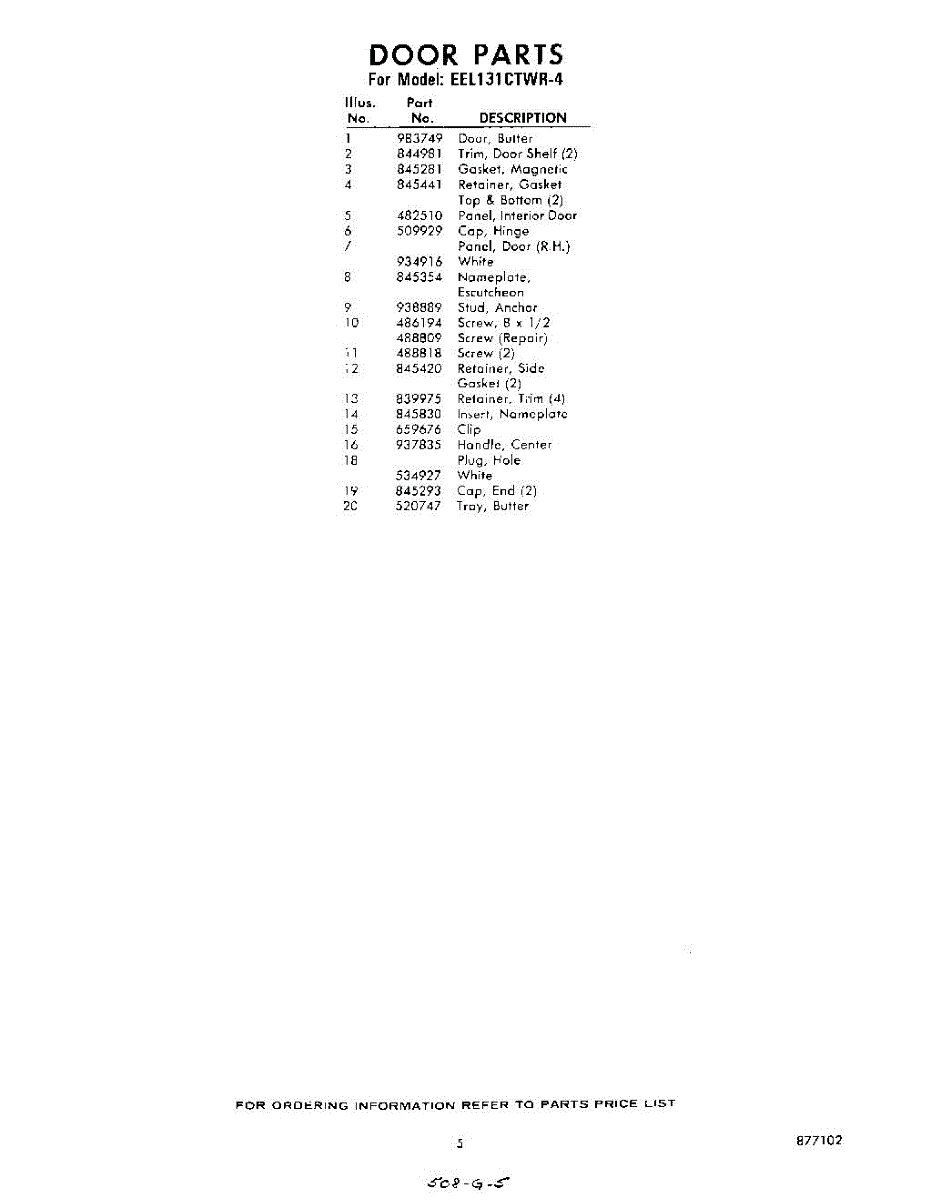 Parts for Whirlpool EEL131CTWR4: 05 - Section Parts