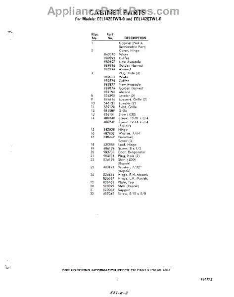 Parts for EEL142ETWR0