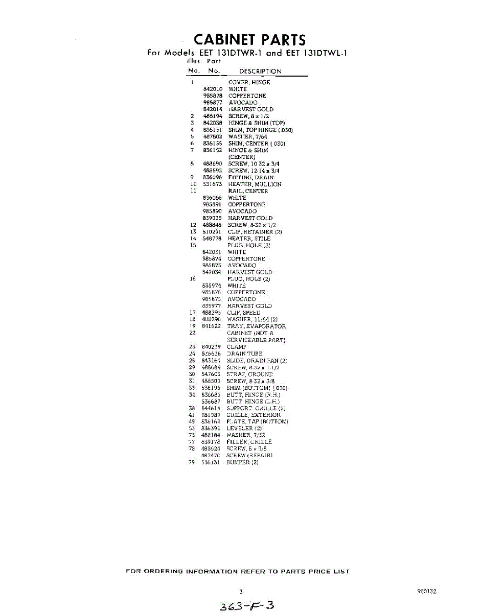 Parts for Whirlpool EET131DTWR1: 03 - Section Parts
