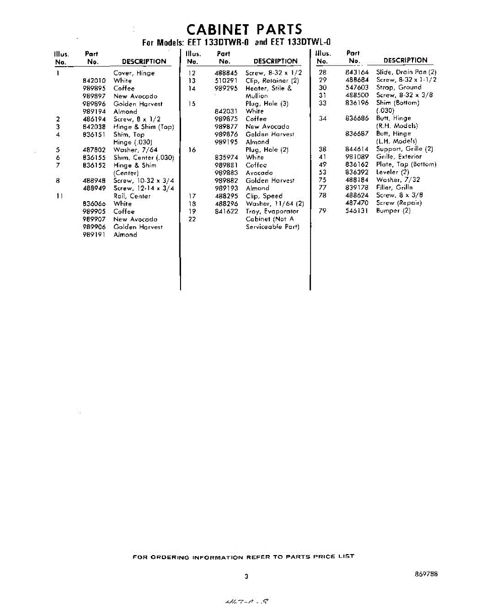 Parts for EET133DTWR0