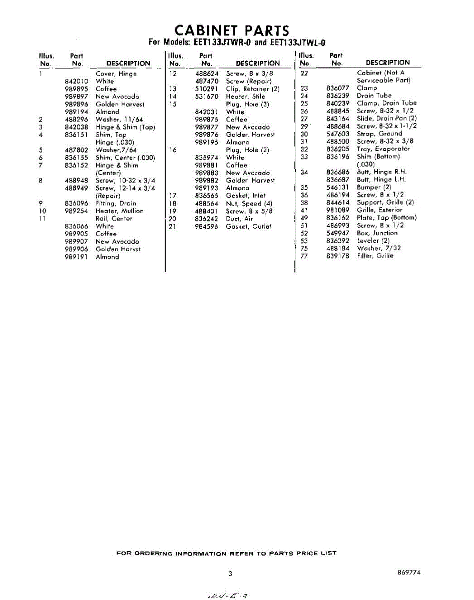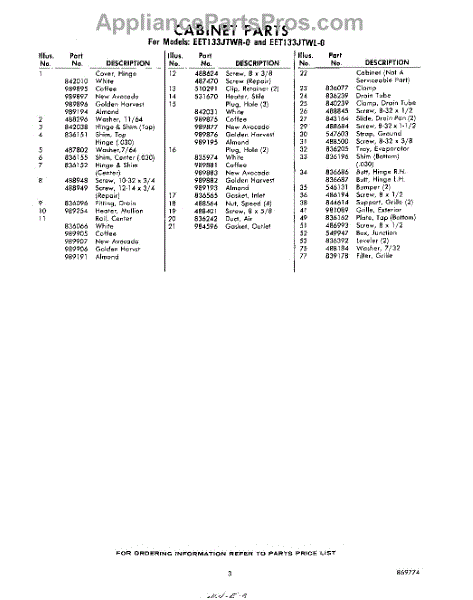 Parts for Whirlpool EET133JTWR0: 03 - Section Parts