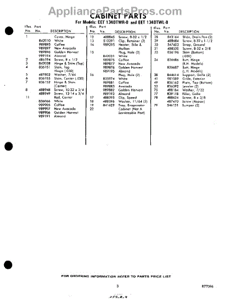 Parts for EET134DTWR0