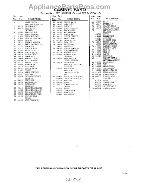 Parts for Whirlpool EET141DTWR0: 03 - Section Parts