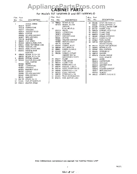 Parts for Whirlpool EET141EKWR0: 03 - Section Parts