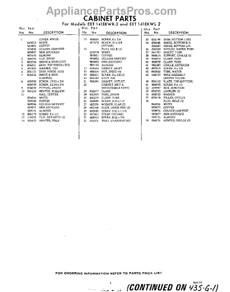 Parts for Whirlpool EET141EKWR2: 03 - Section Parts