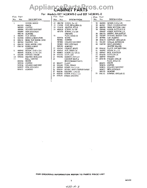 Parts for Whirlpool EET142JKWR0: 03 - Section Parts