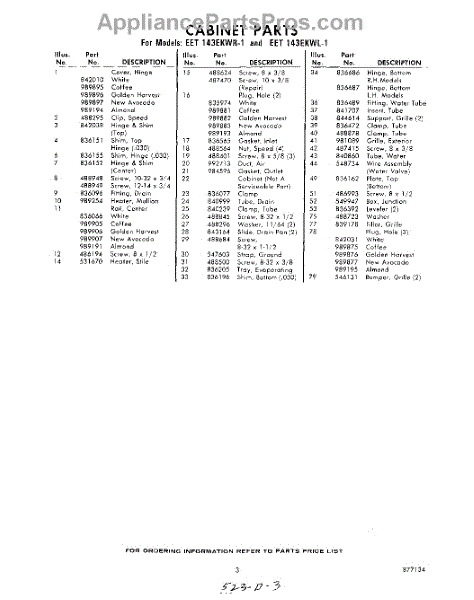 Parts for Whirlpool EET143EKWR1: 03 - Section Parts