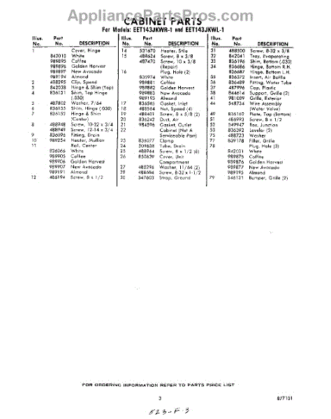 Parts for Whirlpool EET143JKWR1: 03 - Section Parts