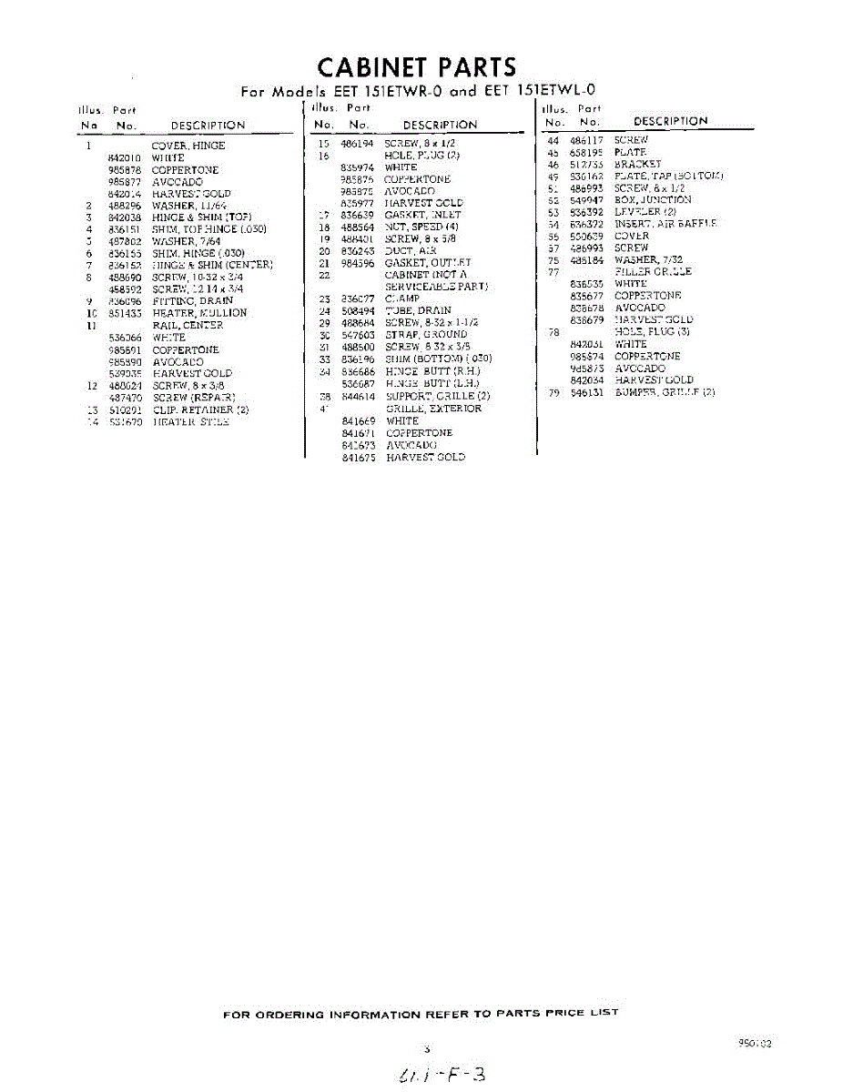 Parts for EET151ETWR0