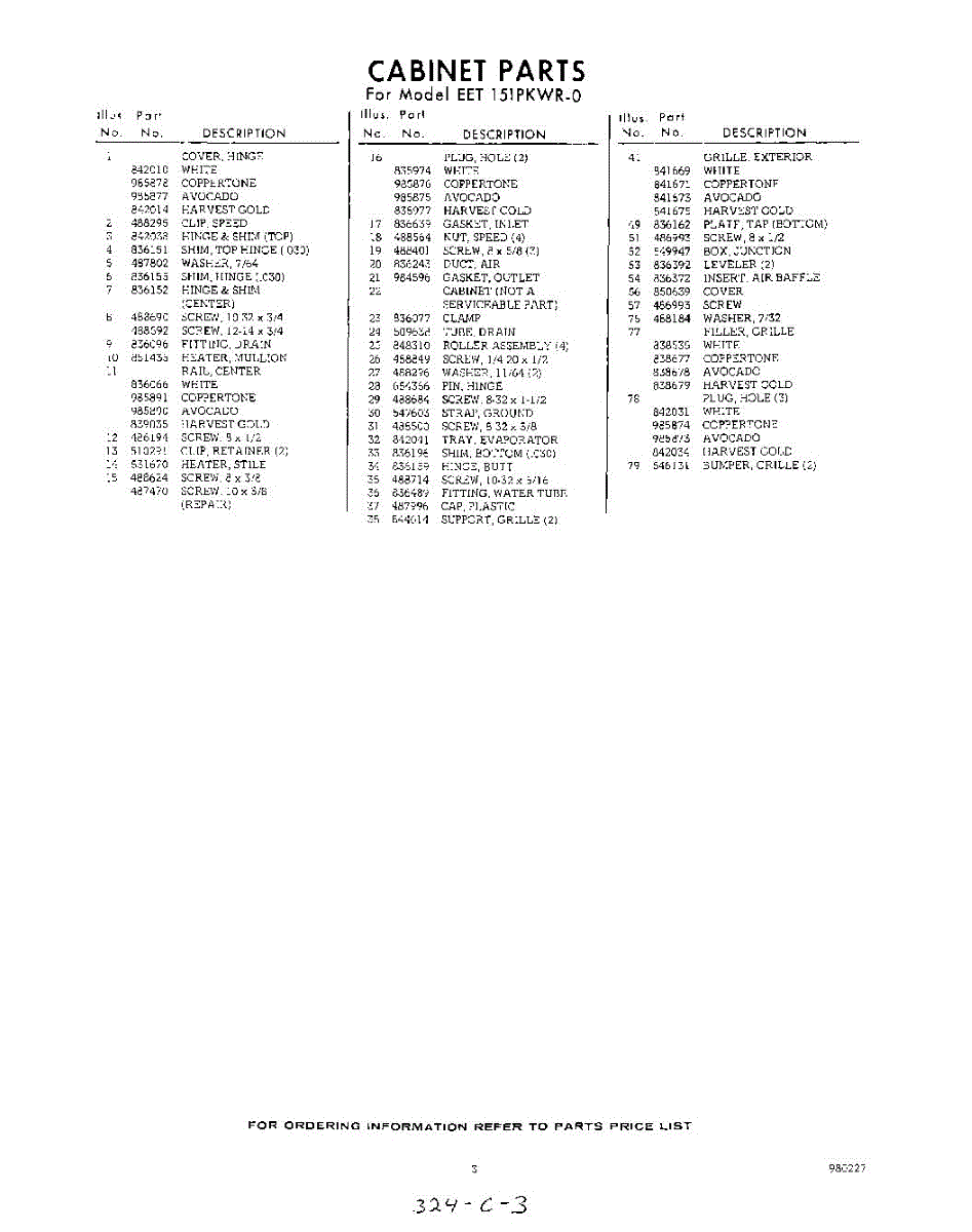 Parts for Whirlpool EET151PKWR0: 03 - Section Parts