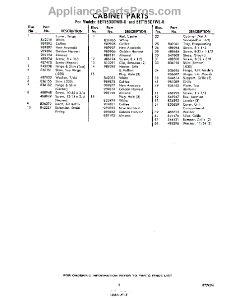 Parts for Whirlpool EET153DTWR0: 03 - Section Parts