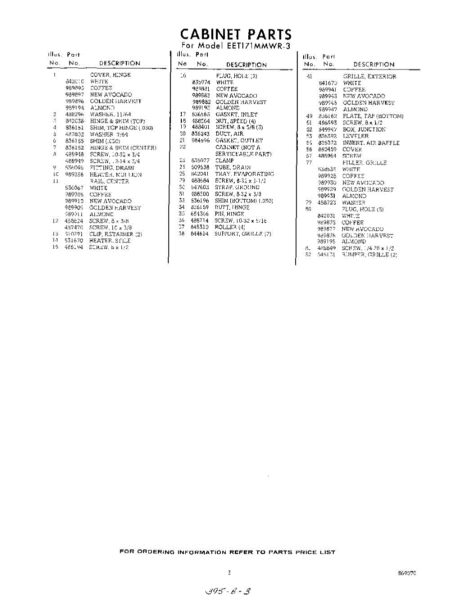 Parts for Whirlpool EET171MMWR3: 03 - Section Parts