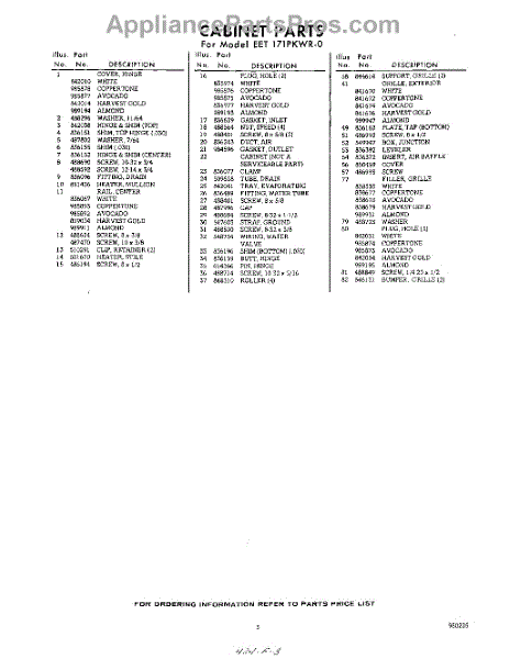 Parts for Whirlpool EET171PKWR0: 03 - Section Parts