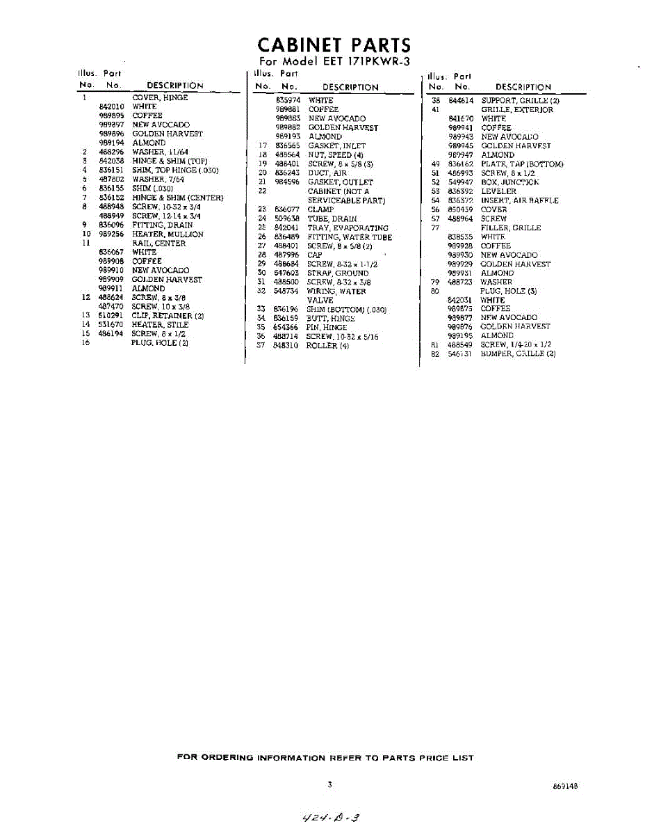 Parts for Whirlpool EET171PKWR3: 03 - Section Parts