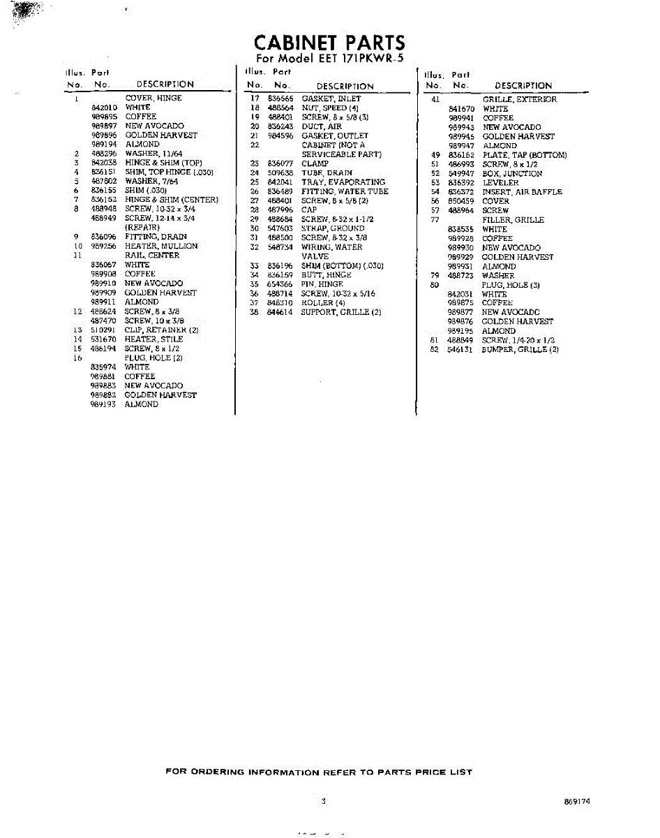 Parts for Whirlpool EET171PKWR5: 03 - Section Parts