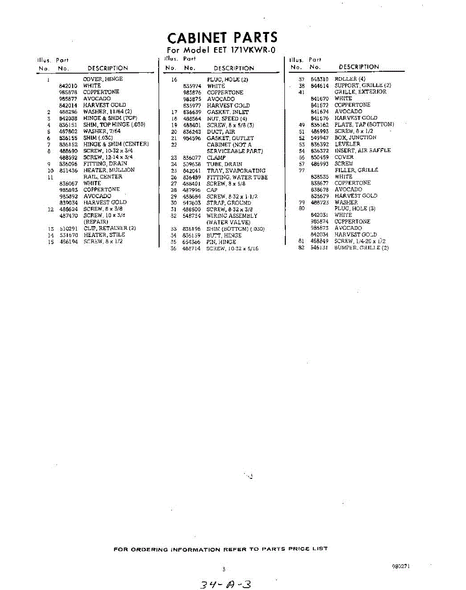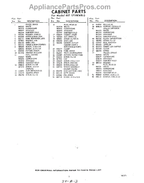 Parts for Whirlpool EET171VKWR0: 03 - Section Parts