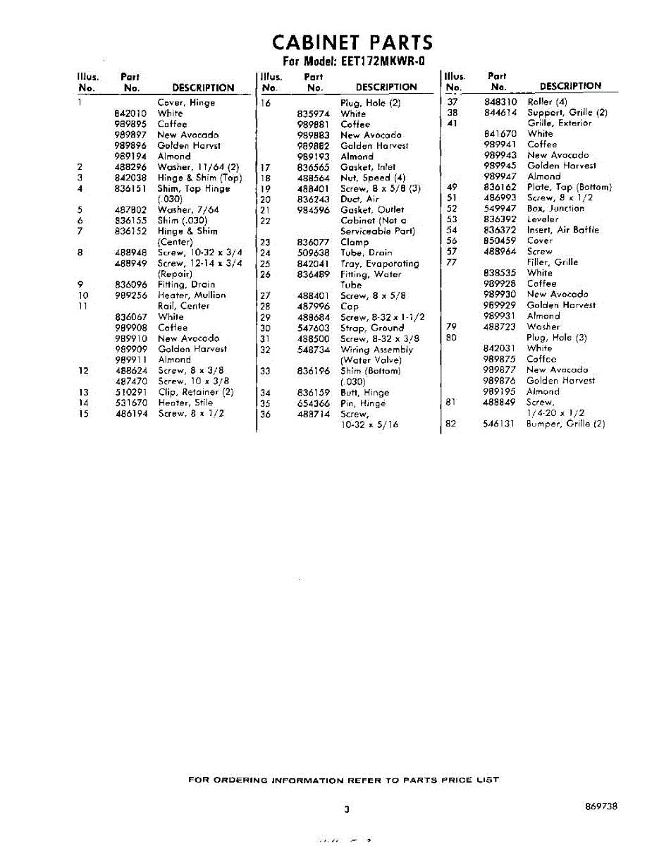 Parts for Whirlpool EET172MKWR0: 03 - Section Parts