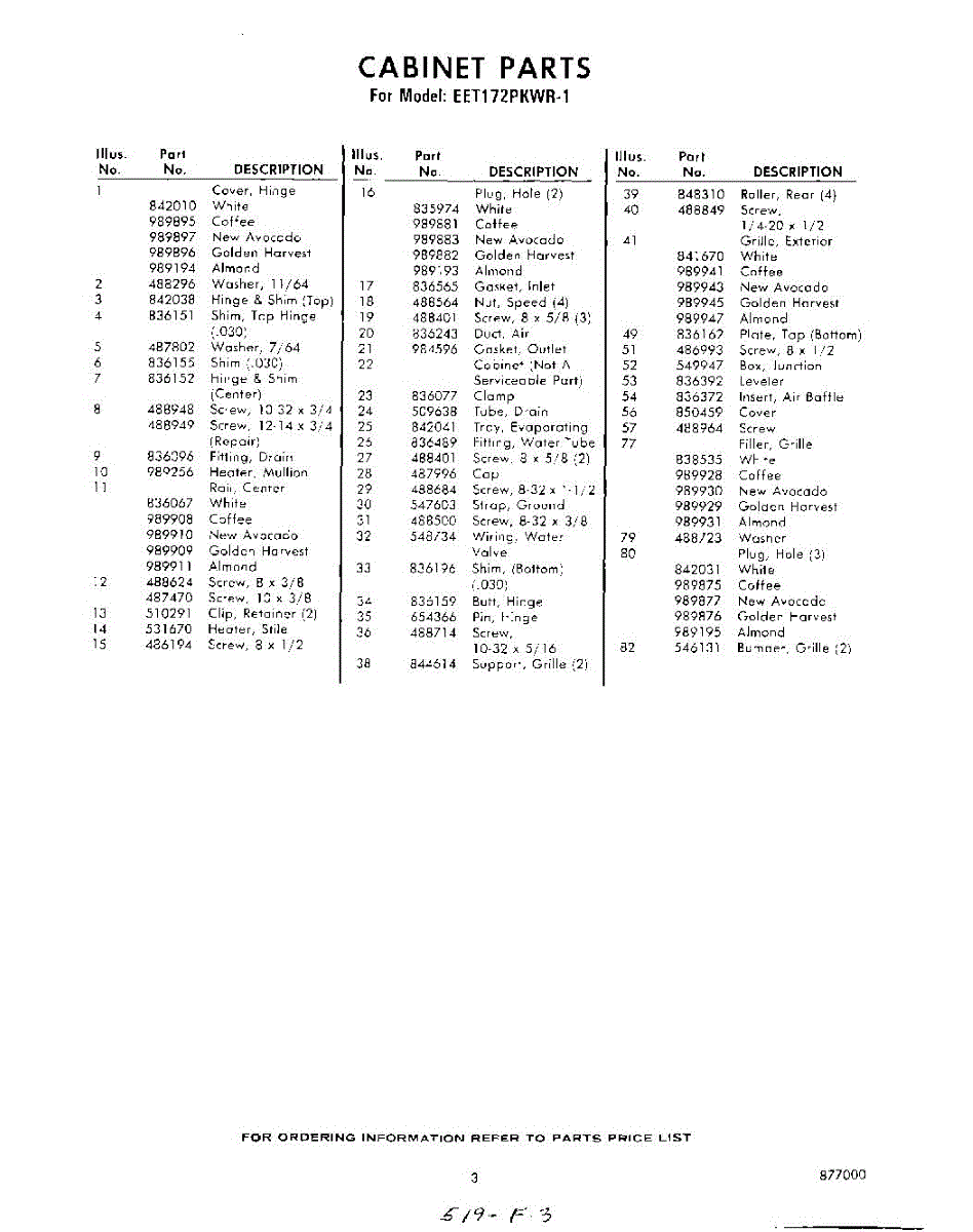 Parts for Whirlpool EET172PKWR1: 03 - Section Parts