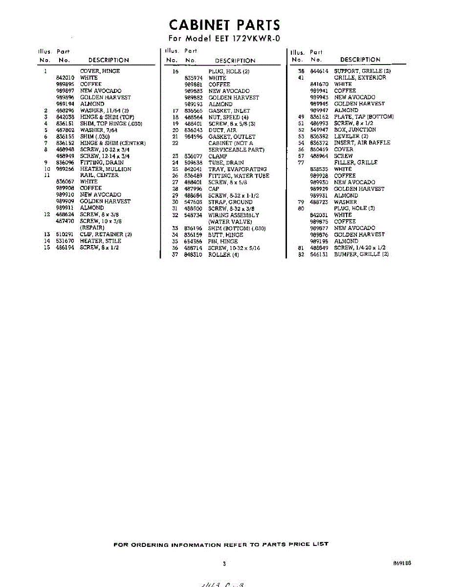 Parts for Whirlpool EET172VKWR0: 03 - Section Parts