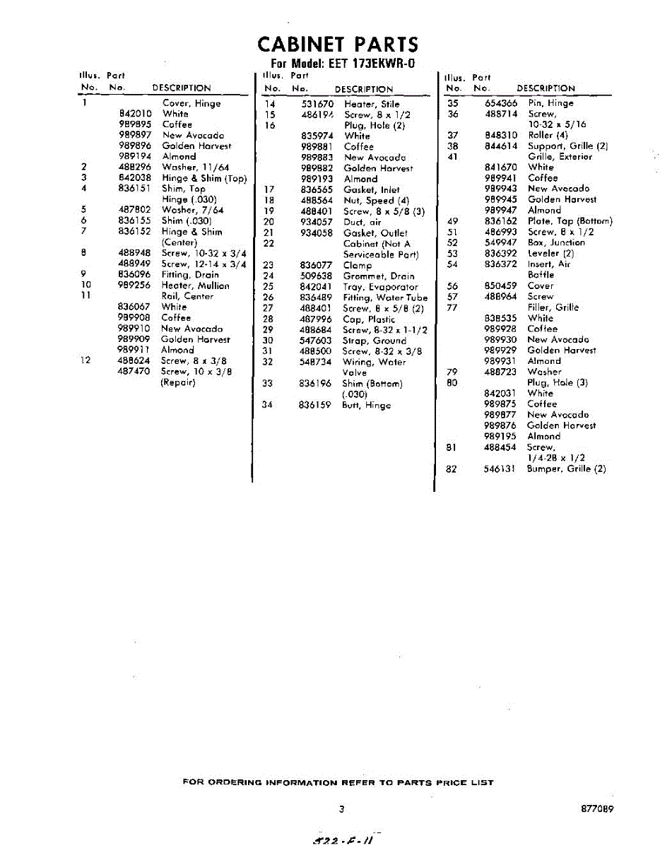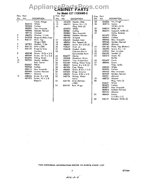 Parts for Whirlpool EET173EKWR0: 03 - Section Parts