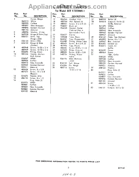 Parts for Whirlpool EET173EKWR1: 03 - Section Parts