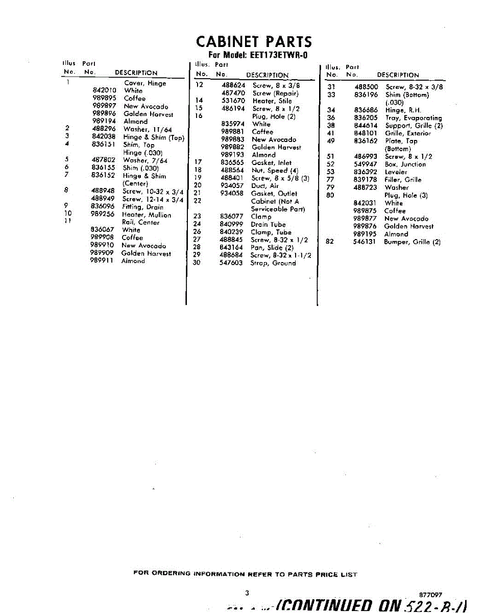 Parts for EET173ETWR0
